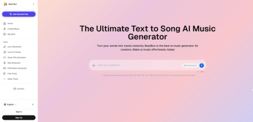 BeatBun is an AI-powered text-to-music creation platform that turns your words, lyrics or ideas into complete music tracks with one click. Supporting a wide range of genres, it automatically generates melodies, arrangements and rhythms, while offering professional tools like MIDI export, track extension and voice replacement. Even users without musical background can quickly create royalty-free, commercially usable music and original songs. Ideal for video soundtracks, podcast backgrounds, game audio and social media content, BeatBun lowers the barrier of music production efficiently and intelligently. It boosts content creation productivity and provides a one-stop AI music generation solution for individuals and teams worldwide.